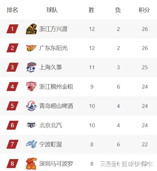 目前,CBA积分榜排名前三名的球队,他们的位置还是比较稳固的。积分榜第一名是卫冕冠军广厦队,他们目前的战绩是12胜2负,排在积分榜榜首的位置。而11冠王广东队紧随其后,他们同样拿到了12胜2负的战绩,排在积分榜第二名。而积分榜第三名则属于上海队,他们在上一轮输球后,球队战绩变成11胜3负,比广厦和广东多输了一场比赛,球队排名暂时从积分榜第一名,下滑到第三名。
